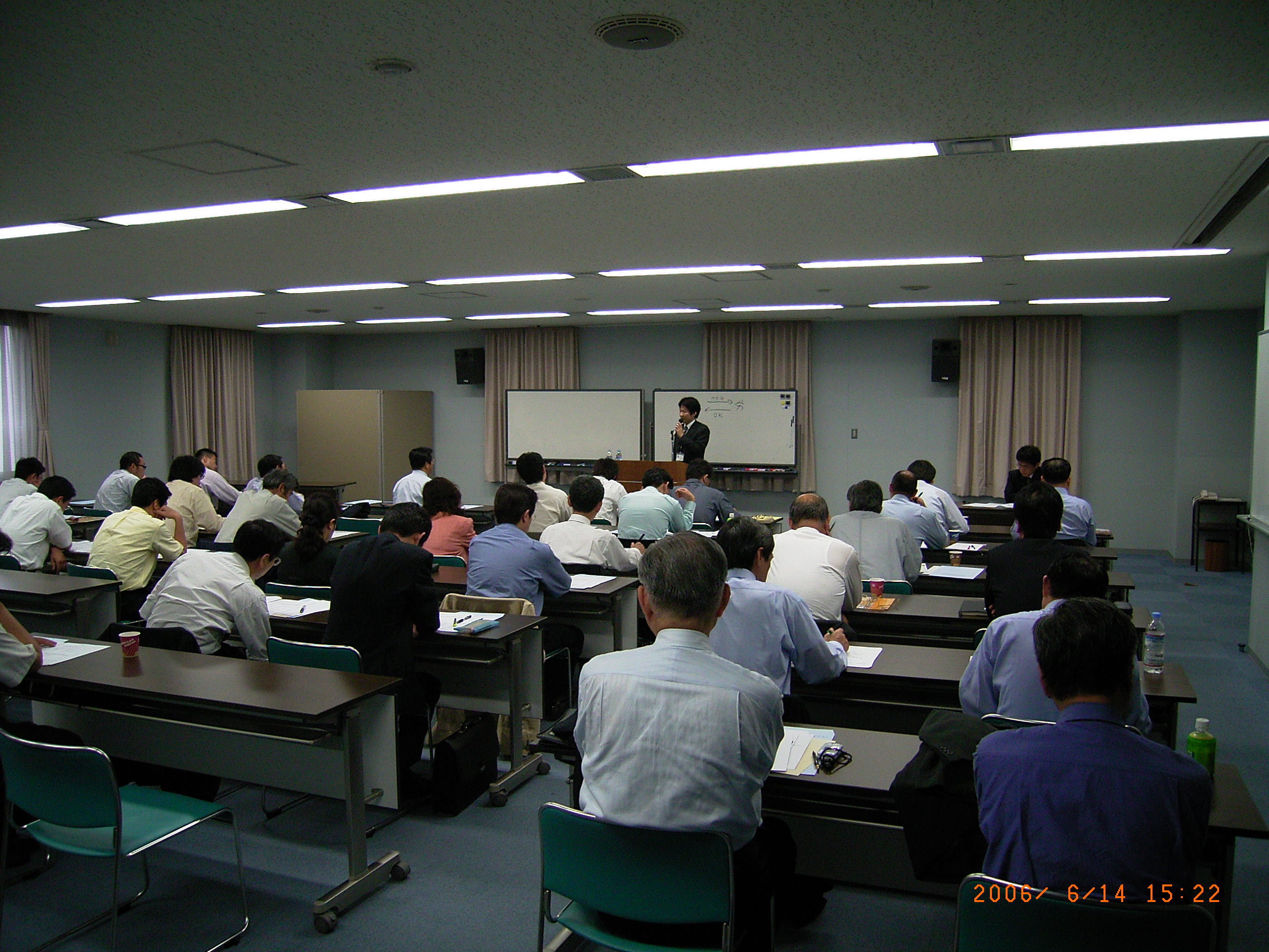 私の出番は午後3時過ぎから始まり、自分で作ったレジュメを片手にがむしゃらに説明しました。たまにホワイトボードで私の超汚い字で説明したり、資料をその都度見てもらったり何とかわかりやすく説明しようと努めたつもりです・・・しかし、前半は喋りが時間を気にして早すぎたのに気付き、途中からペースを落としました。