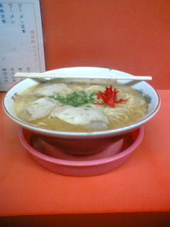 ラーメンを早速食べると、スープが久留米ラーメンの「呼び戻し」とはまた違う「クセ」がありました。ラードがどうも他の普通のラーメン屋さんと違うようです。あと、麺が非常にコシがあっておいしかったです。