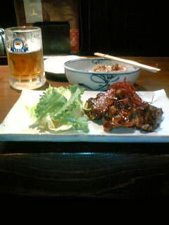 ちなみにこの日に食べたのは、日替わりメニューの「骨付きカルビ」で炭火で焼いた骨付きカルビは絶品でした!通常、この店では1人で飲むことが多かったりします・・・ここは、居心地がいいのでつい長居しがちです・・・