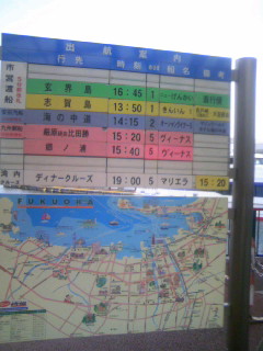 実は、去年から趣味の方でもともと乗り物では「鉄道」「飛行機」が好きだったんですが、韓国へ国際フェリー「かめりあ」に乗って以来、船にハマッテしまいました・・・で、去年年末は「阪九フェリー」で関西の実家へ帰省。今回は福岡近郊の船を乗りに行きました・・・