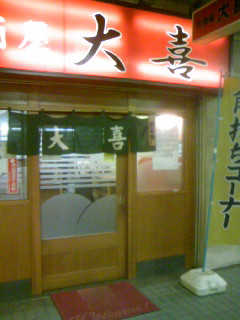 通常1人で、1000円以内からどんなに飲んで食っても2000円前半です。久留米駅での時間つぶし又は軽く飲むにはいいお店だと思います。ちなみにこの日は、おでんと生ビールで軽く済まし、次のお店に行きました。実はこの日は、次のお店が「本命」だったんで・・・ちなみに、ここの「大喜」の店員さんイケ面です・・・