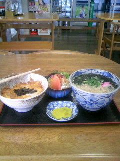 フェリーターミナル到着後長崎までの2等乗船券(2700円)を買い、12時発のフェリーには、売店しかなく食べる物がないと知っていたので、フェリーターミナル2階にある食堂で五島うどんと玉子丼のセットを頼み、たべました。玉子丼の玉子がほぼ「完熟」でしたが、五島うどんの細麺なのにコシがあり、おいしかったです(^-^)