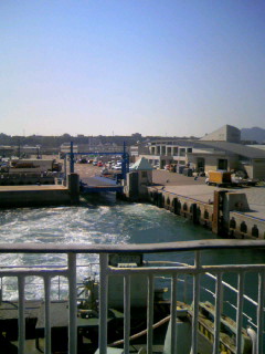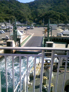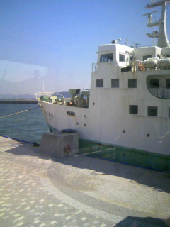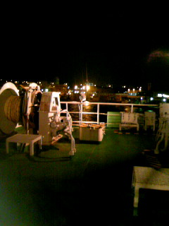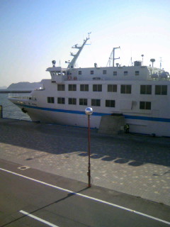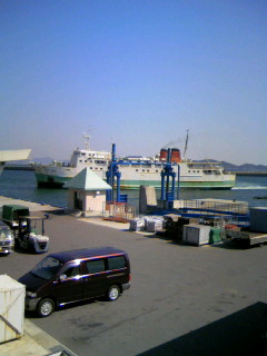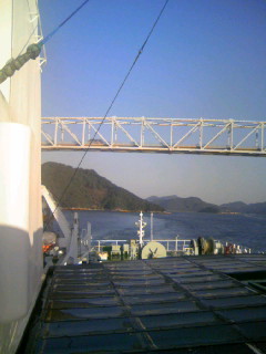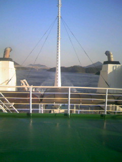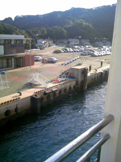 寝てる間、天候はいいと言うものの、やはり玄海灘(外海)を航行する為、かなり縦揺れがありました。朝4時過ぎ、五島列島最初の到着地・宇久に到着。船内放送と2等船室が明るくなったので、目が覚めました。