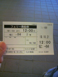 本当は明日日曜日日帰りで唐津から壱岐へのフェリー旅行をするつもりだったのですが、船オタの血が騒ぎ、思い切って1泊2日のフェリー旅行に行く事にしました。行先は、五島列島の福江、まずは評判のいい野母商船のフェリー「太古」に乗ります。その後、福江から長崎まで九州商船のフェリーに乗る予定です。
