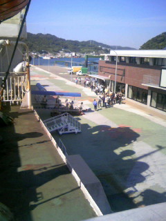 早い昼食を済ました後、何故か無料でネットが1人1回20分出来るパソコンコーナーがあり、メール等チェックした後、売店にてお土産として五島うどんとかんころ餅とフェリーの中で1杯飲む為のつまみとして魚の擂り身の天ぷらを買い、2階フェリー乗場に向かいました。