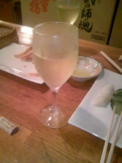 ワイン1杯目は甲州産絞りたて白ワイン(400円)で期間限定品とのこと。甘くフルーティーで若干スパークリング系で美味しかったです(^^)v2杯目は400円の白ワインでスペイン産との事。今度は超辛口でした。3杯目は300円の白ワインでポルトガル産で面白い(?)味でした。