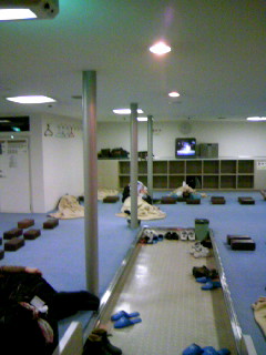 今日は満員ではありませんが、4〜5割程度の混み具合です。2等船室の客層は、ほぼ地元(五島)客でしょうか?なお、毛布は有料(100円)でさっそく借りました...ラウンジも12時過ぎには消灯したので、私も2等船室に戻り眠りに入りました。