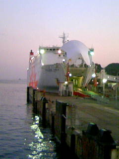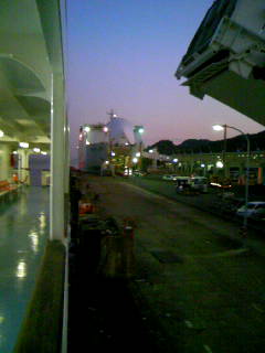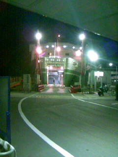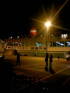 目が覚めたのは、朝4時過ぎ、飲み過ぎたせいか二日酔いです...ただ、幸いなのは、瀬戸内海航路なので揺れる事なく、船酔いは全くありません。眠気と酔い覚ましに船外デッキに出ると、既に松山観光港の近くを航行していました。松山観光港5時着。お遍路さん達の団体が杖につけた鈴をならしながら降りて行きます。