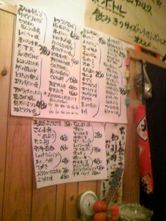 このお店のおつまみは、280円・380円・480円と手頃な価格が多いです。で、味は美味しく安いので申し分ありません。刺身盛り合わせ(680円)も2回とも頼んだんですが、手頃な値段の割には2回とも違う種類の魚の刺身が出てきてオトクです。あと、焼酎がボトル(600円)で2合くらい?の量で飲む事が出来て手頃です。