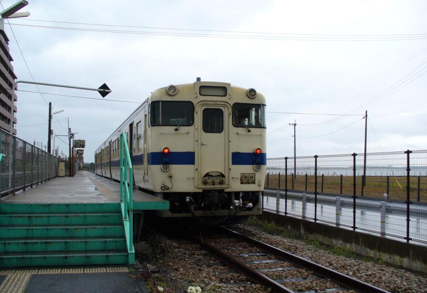 有明フェリーに乗る為、まずは西鉄の特急で大牟田へと向かいます。車窓は久留米を過ぎると田畑が広がり、既に春らしく緑が広がっています。大牟田には、午後3時過ぎに着き、ここからJRの普通で長洲に向かいます。15時29分発の八代行の普通列車は、2両編成のワンマン列車でした。乗客も地元の学生等結構乗っています。15分程で長洲駅到着。