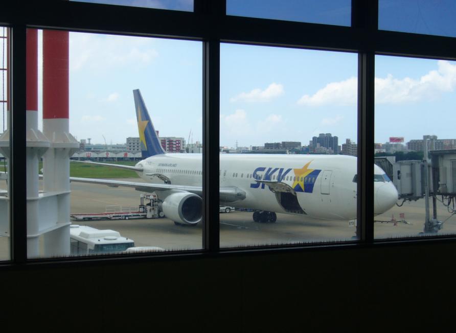 福岡空港には、約1時間前に到着しました。さっそく搭乗手続を行います。今回は「前割21」で航空券を購入した為、福岡〜東京羽田まで15500円と割安で、実はこの後乗るオーシャン東九フェリーの東京〜新門司間より安かったりします...。搭乗手続後、人だかりでごった返す身体検査を通過し、一番端の搭乗口までてくてく歩きました。