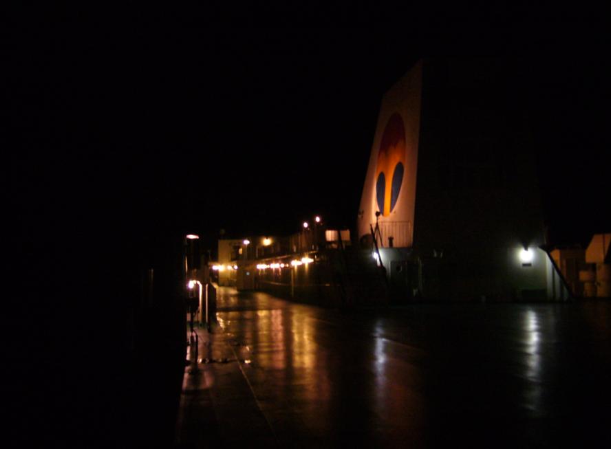 荷物を船室に置いた後、出港前から出港まで船首外部デッキで甲板員さん達の仕事ぶりを見入ってました。出港後もしばらく、東京の夜景を見ていました。同じように、外部デッキで夜景を見ている乗客が結構いました。