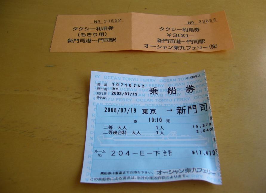 出港後、落ち着いた所で、売店兼案内書で門司港から門司駅までの乗り合いタクシーチケット300円を購入しました。通常なら2200円かかるのがフェリー会社の配慮で「300円」で済むのは特筆モノです。