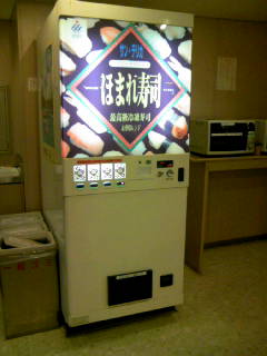 あと、通常では売っていない冷凍握り寿司の自販機があります。「ほまれ寿司」と言って握り寿司8個で500円で食べれます。なお、専用電子レンジで「温めて」から食べるようです。