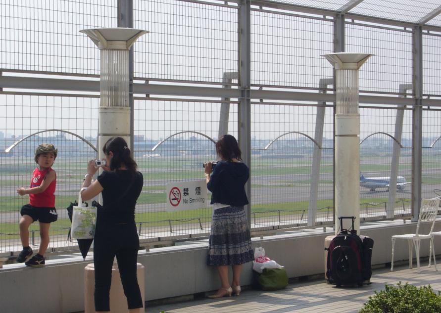 羽田空港到着後、まだ船に乗るまで時間があるので、空港ビル屋上展望デッキでJALやANAの航空機を撮影しました。その時、1眼レフを持って航空機を撮りまくる30代前半と思われるきれいな女性を発見しました。女性の飛行機マニアと思われます...。