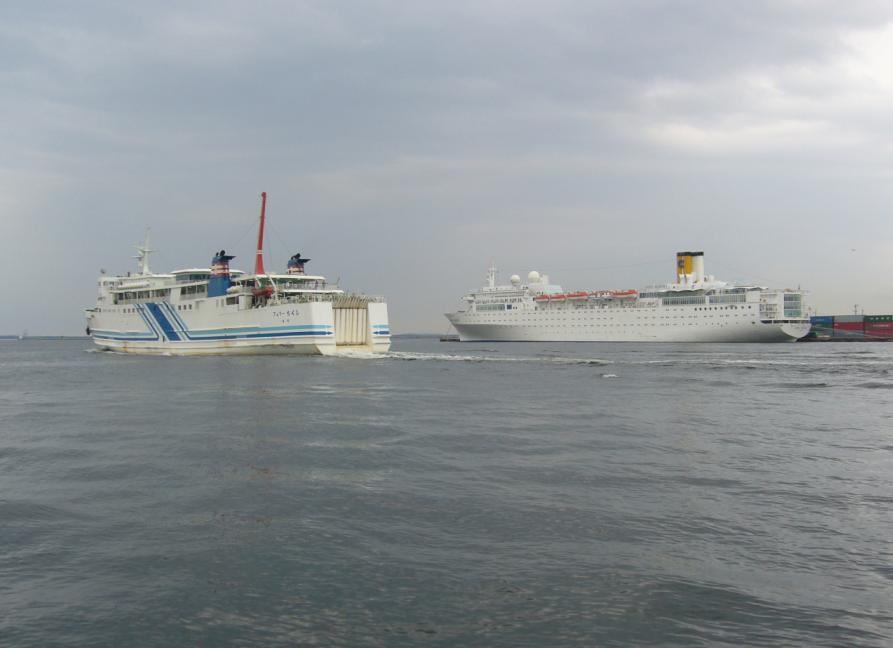 昼食後、ちょうど同じオーシャン東九フェリーの「おーしゃんさうす」の行き違いに遭遇し、船首外部デッキよりすかさず撮りまくりました。まさか、その時知っているマイミクのKさんが乗っているとはこの時、気づきませんでした・・・。
