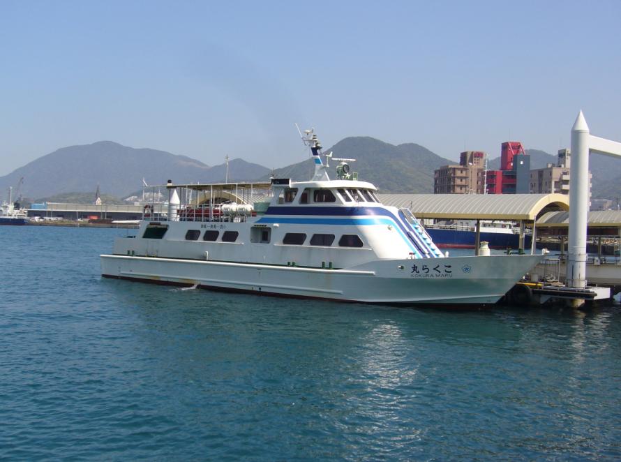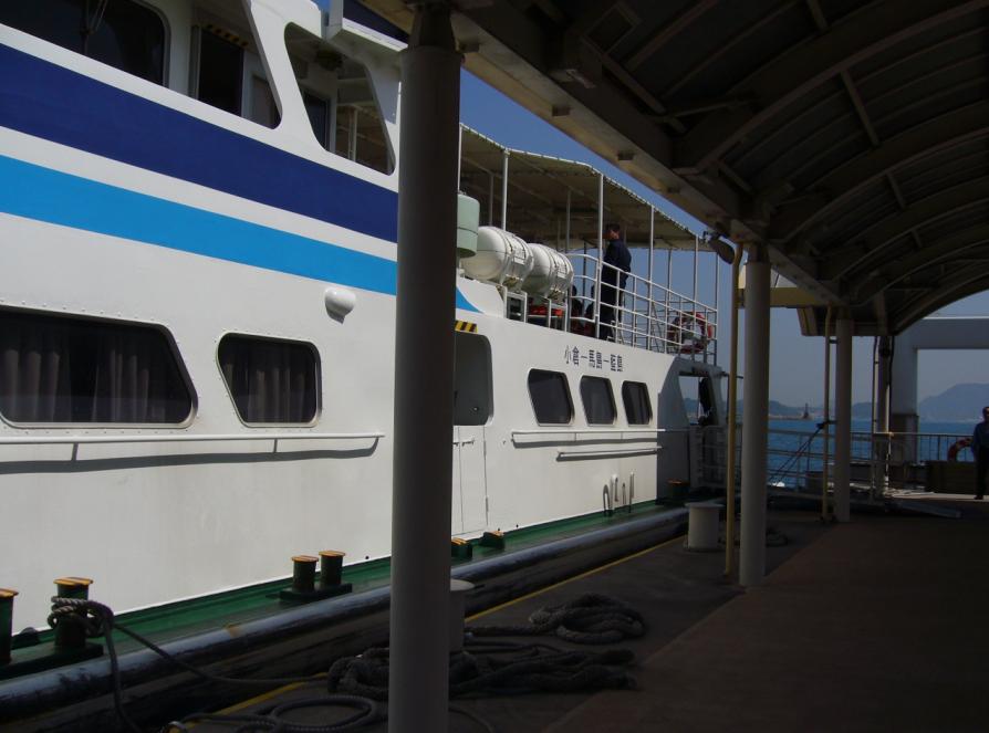 車内は、私を含め10人しか乗っておらず、ガラガラでした。高速に入ってから爆睡してしまいましたが、途中黒崎あたりで目が覚めました。途中、北九州都市高速で事故渋滞に出会ってしまい、10分遅れで小倉駅到着。あわてて、JR小倉駅北口から歩いて5分程の北九州市営渡船乗り場へ向かいました。