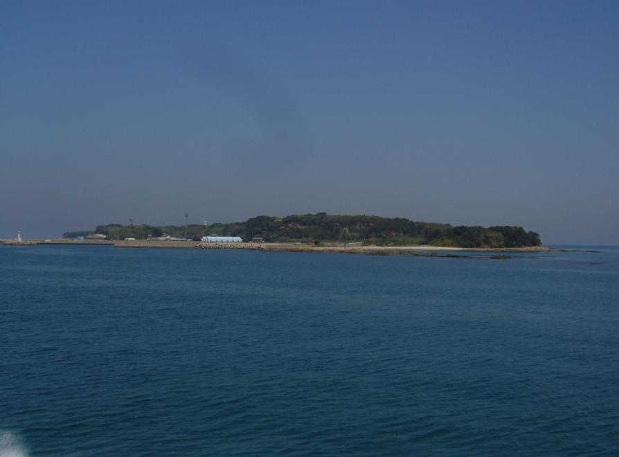 馬島から約10分ほどで、平べったい島影が見え、定刻11時5分小倉から35分ほどで藍島に到着。全員がどっと降ります。藍島は、人口300人程の漁業の島です。渡船場から歩いて島の北端である「千畳敷」まで歩いてみました。