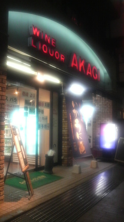 沖縄料理に満足した後、2軒目に西鉄大橋駅から歩いて3分程にある角打ち「赤木酒店(Bon Vinvant)」に行きました。ここは、いわゆるお酒屋さんがしている角打ち(立ち飲み)ですが、ワインが飲めてテラスにテーブル席もるおしゃれなお店です。
