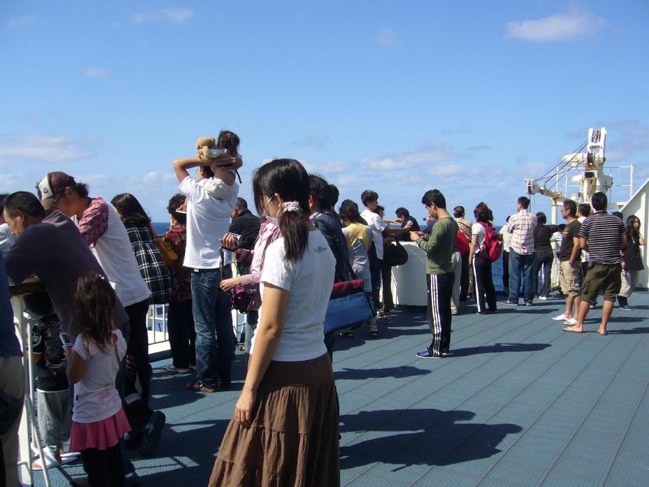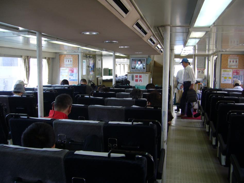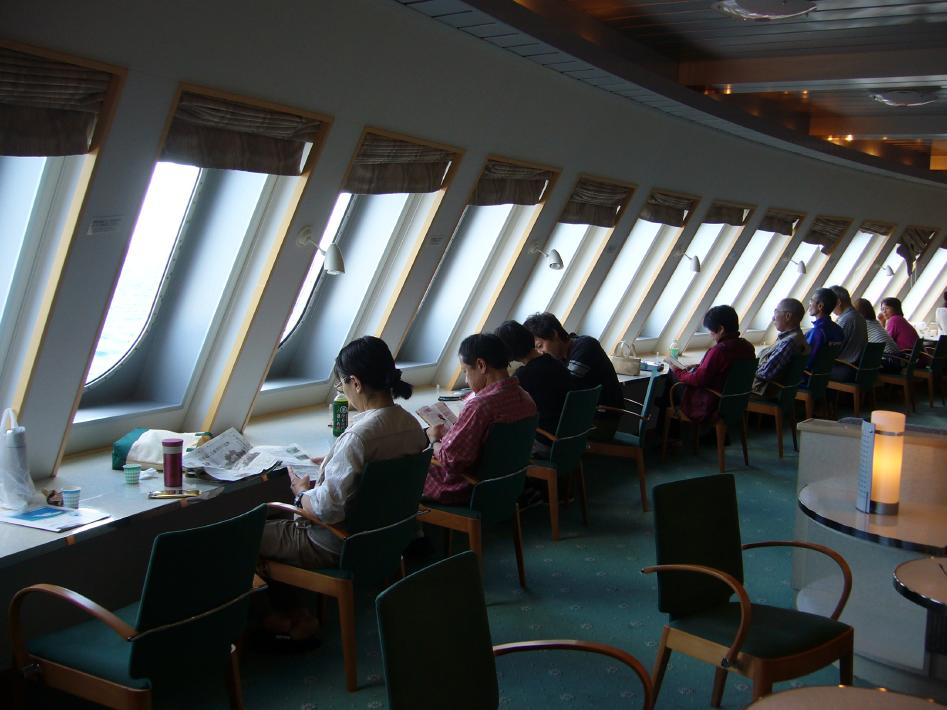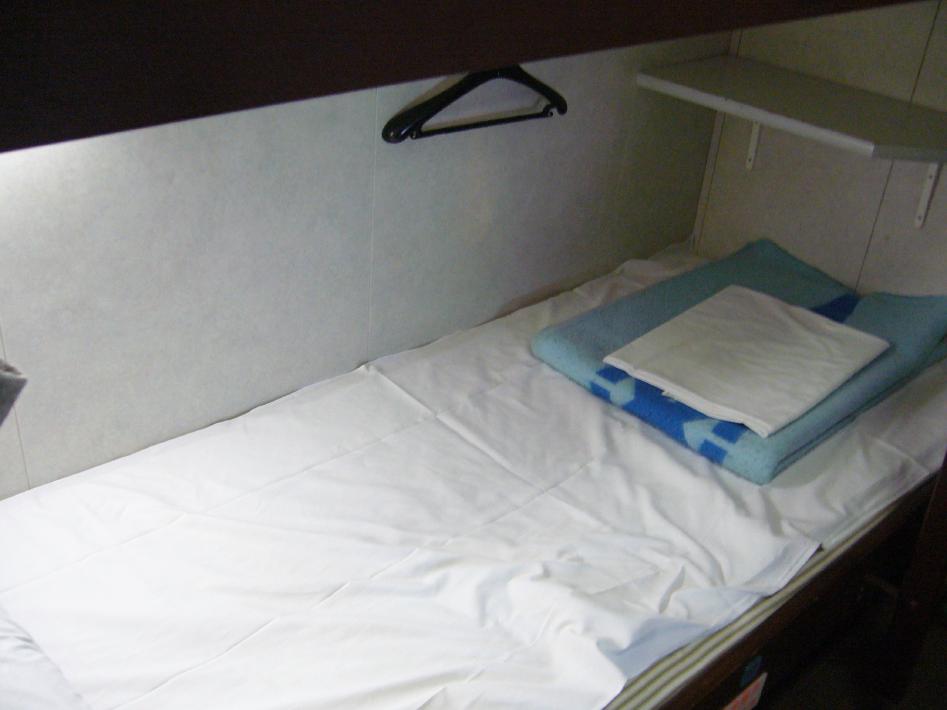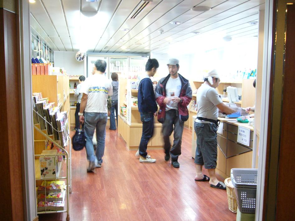 まずは、S君と味噌ラーメンと簡単なつまみでビールを飲みくつろいだんですが、館内(船内)は連休のせいか超満員で仮眠室も人が溢れ、食堂の床や廊下までマットと毛布を敷いて寝ている状態・・・。まさに「難民船」でした・・・。そんな中、幸いリクライニングシートをキープ出来、眠りについたのは0時30分過ぎでした・・・。