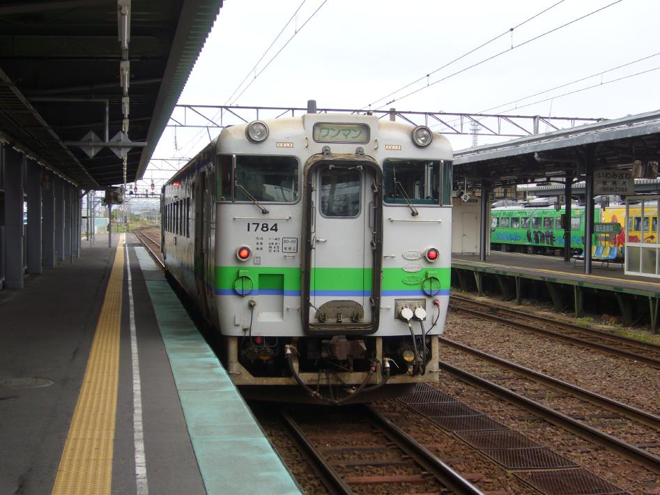 札幌からすぐに岩見沢行の普通に乗り越えます。車両は現在札幌近郊電車の主力721系でした。車内は転換クロスシートなので快適です。札幌を出てしばらくすると、北海道らしい郊外の景色が広がります。40分程で岩見沢到着。岩見沢駅のキヨスクで朝食のおにぎりを購入。北海道らしい「いかめし」のおにぎりがあり、物珍しく思わず食べました(^^)。