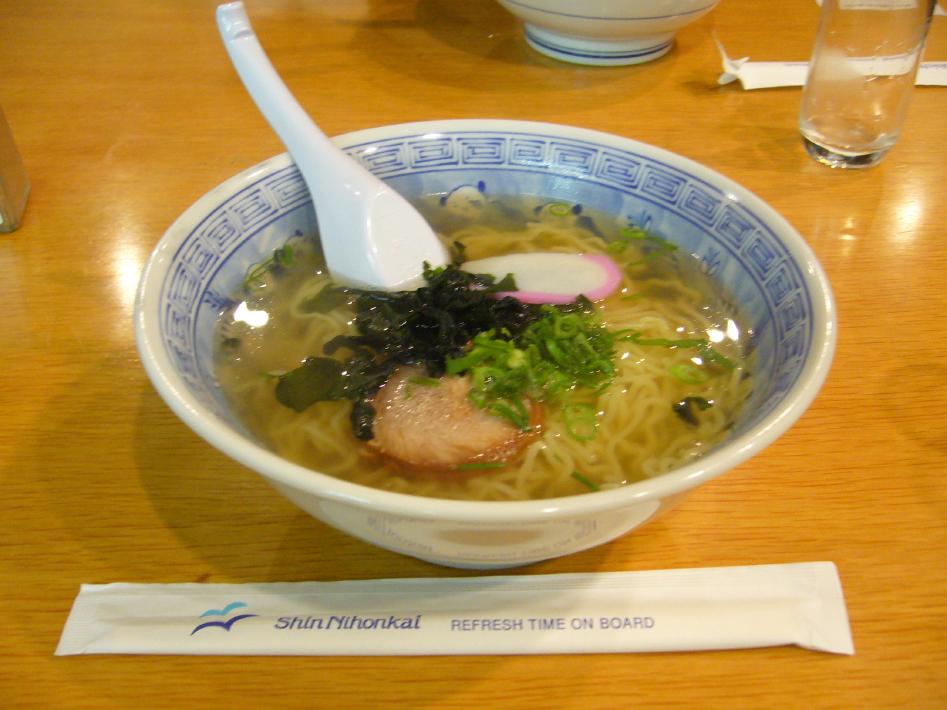乗船手続後22時前、フェリーターミナルにある食堂で遅い夕食として塩ラーメン600円を食べました。22時閉店なのでギリギリです...。次回乗船する時は、事前に夕食を食べておくか弁当を買っておいた方が良さそうです...。