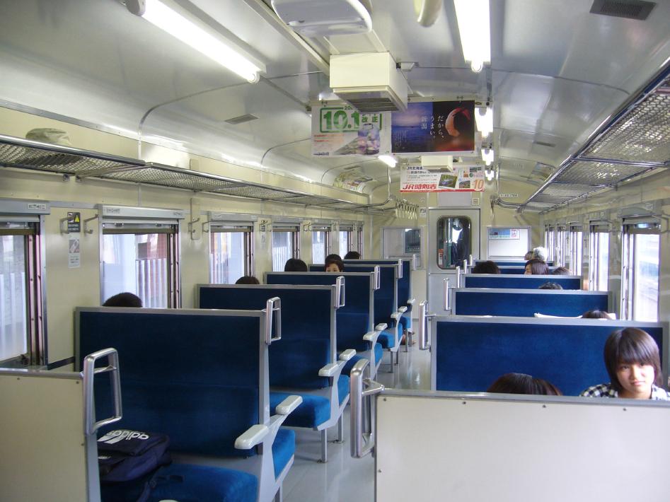岩見沢から今日のメインである9時8分発苫小牧行ディーゼルカー普通キハ40単行ワンマンカーに乗りこみました。車内は地元客・旅行客・学生でボックス席がほぼ埋まる程度の混み具合です。定刻に出発した苫小牧行は、キハ40としてはフルスピードでとばします。この室蘭本線は、非電化区間では珍しい複線です。昔栄えた石炭輸送の名残でしょうか?