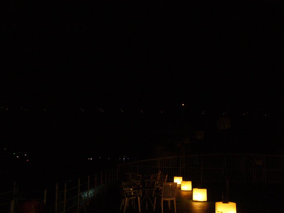 東舞鶴駅の周りはビジネスホテルと既に閉店しているドラッグストアがある位で、コンビニやファミレス等夕食を買ったり、食べる所がありません...。フェリーターミナル行の連絡バスは22時5分発と1時間近く時間があるので、歩いてみる事にしました。途中、焼き鳥屋等飲み屋は結構あったものの、ラーメン屋等食事系の店はありませんでした...。(なお、この記述は2009年9月現在です。それ以降、駅付近の状況は、変更されている可能性がありますので、ご了承願いますm(__)m。)歩いて20分程でフェリーターミナル到着。フェリー会社の案内では30分と書いていましたが、思ったより近かったです。