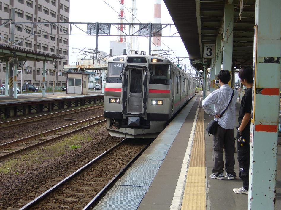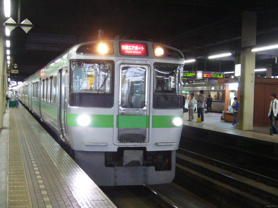 苫小牧からは、まず千歳まで苫小牧11時23分発731系普通札幌行に乗り、千歳から札幌までは11時56分発721系快速エアポートライナーに乗り換えました。エアポートライナーは、さすが空港アクセスの列車らしく特急と比べても劣らない快足ぶりで、30分程で札幌に到着しました。