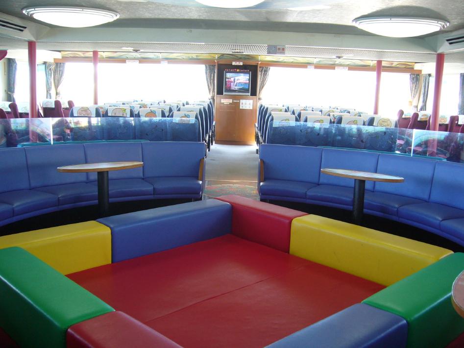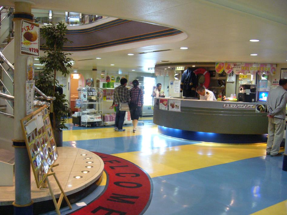 このさんふらわあこがねの客室部分は2階構造になっており、1・2階とも2等座敷、2等寝台、1等、特等があります。そして、1階にレストラン、ゲームコーナー、展望浴室、売店、ロビー、そしてフリースペースの畳敷き大広間である ホール(繁忙期は臨時席?)があります。