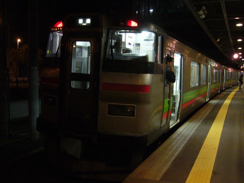 小樽フェリーターミナルから、約20分歩きJR小樽築港駅に到着。まず札幌行普通に乗り、桑園駅で札沼線に乗り換え新川駅に着いたのは夜22時過ぎでした。実は今回台風接近で太平洋フェリーから新日本海フェリーに変更したのに伴い、急遽札幌で宿泊の手配を試みたもののすべて満室で、新川駅から歩いて15分の健康ランド「グルメシップ」に宿泊する事にしました・・・。