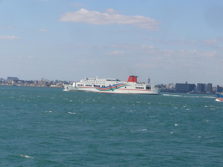 目が覚めてからは、大分港入港まで外部デッキで沖止めされているさんふらわあごーるどや大分空港へと猛スピードで航行するホバークラフトや八幡浜へ向かって航行する宇和島汽船のフェリーを撮影しました。大分港10時40分到着。