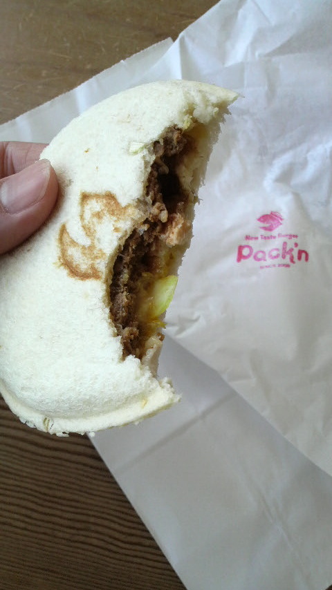 この「手作りPack'n(パックン)久留米店」は、いつも電車に乗るときに通るんですが、買ってる姿を見たことが、たまたまなのか?ありません。。。とりあえず、今回1番シンプルな「Pack'nバーガー150円」を買いました。