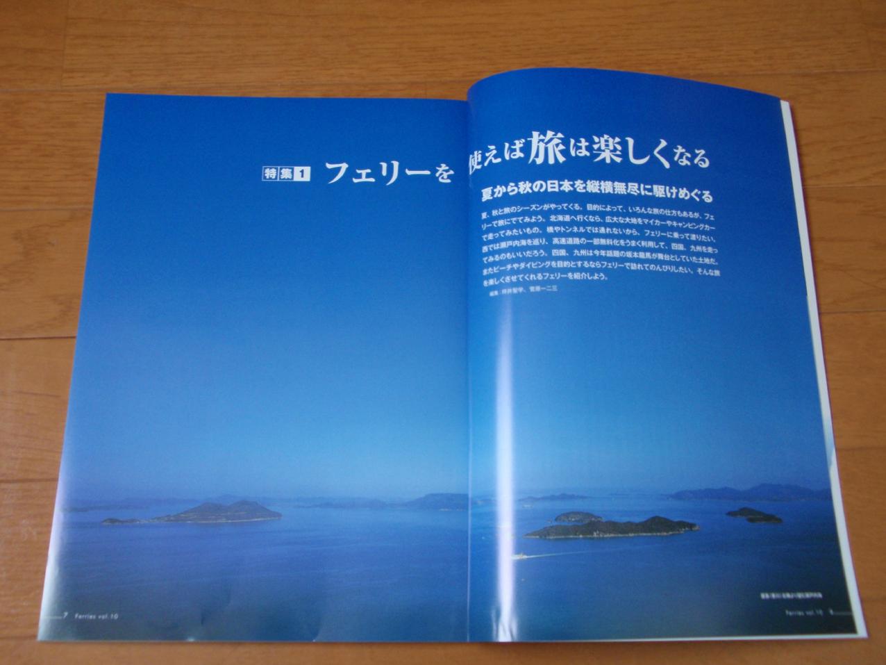 今回の記事は、高速1000円・無料政策で苦しむフェリー業界を応援したいという主旨が伝わってくる内容です。特に「がんばれ日本の長距離フェリー!」という長距離フェリー特集・乗船記や「瀬戸内海、縦横無尽の船旅」と銘打った瀬戸内海航路の特集は、必読ものです。