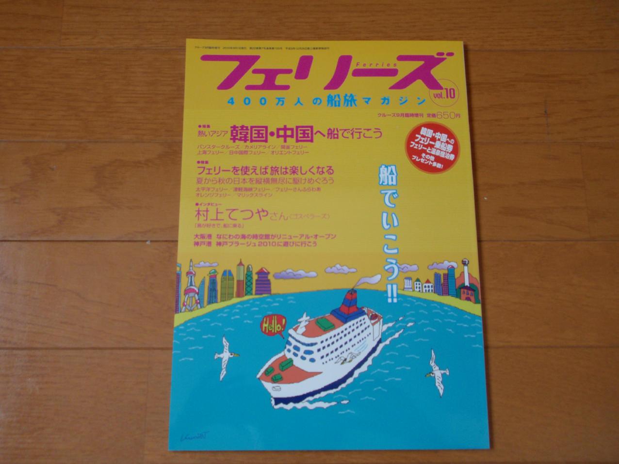 「フェリーズvol10(海事プレス社・650円)」は、クルーズ船の情報誌「クルーズ」の増刊号扱いであり、発売時期は不定期だったりします・・・。今回の発売日は、先日私が紹介した「にっぽん全国たのしい船旅2010−2011年版(イカロス出版)」の発売時期を意識したのかもしれません・・・。
