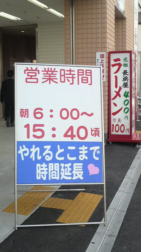 先日、仕事の途中昼食として久々に元祖長浜屋に行きました。開店時間が、以前より若干長くなり朝6:00〜15:40頃に延長になったようです。
