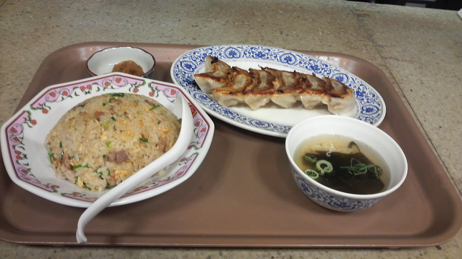 とりあえずオーソドックスなチャーハンセットを頼みました。厨房はオーダーが集中しバタバタしているようです。おばちゃん2人は和気藹々と仕事をこなしています。