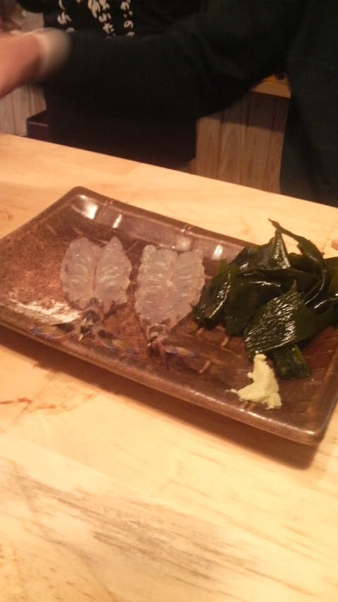 また、その日によって入荷する刺身が違うようで、店主に「オススメ」を聞いて頼むのも良さそうです。私も、先日はオススメの車海老の刺身・ヒラメのえんがわ刺身をいただきました。
