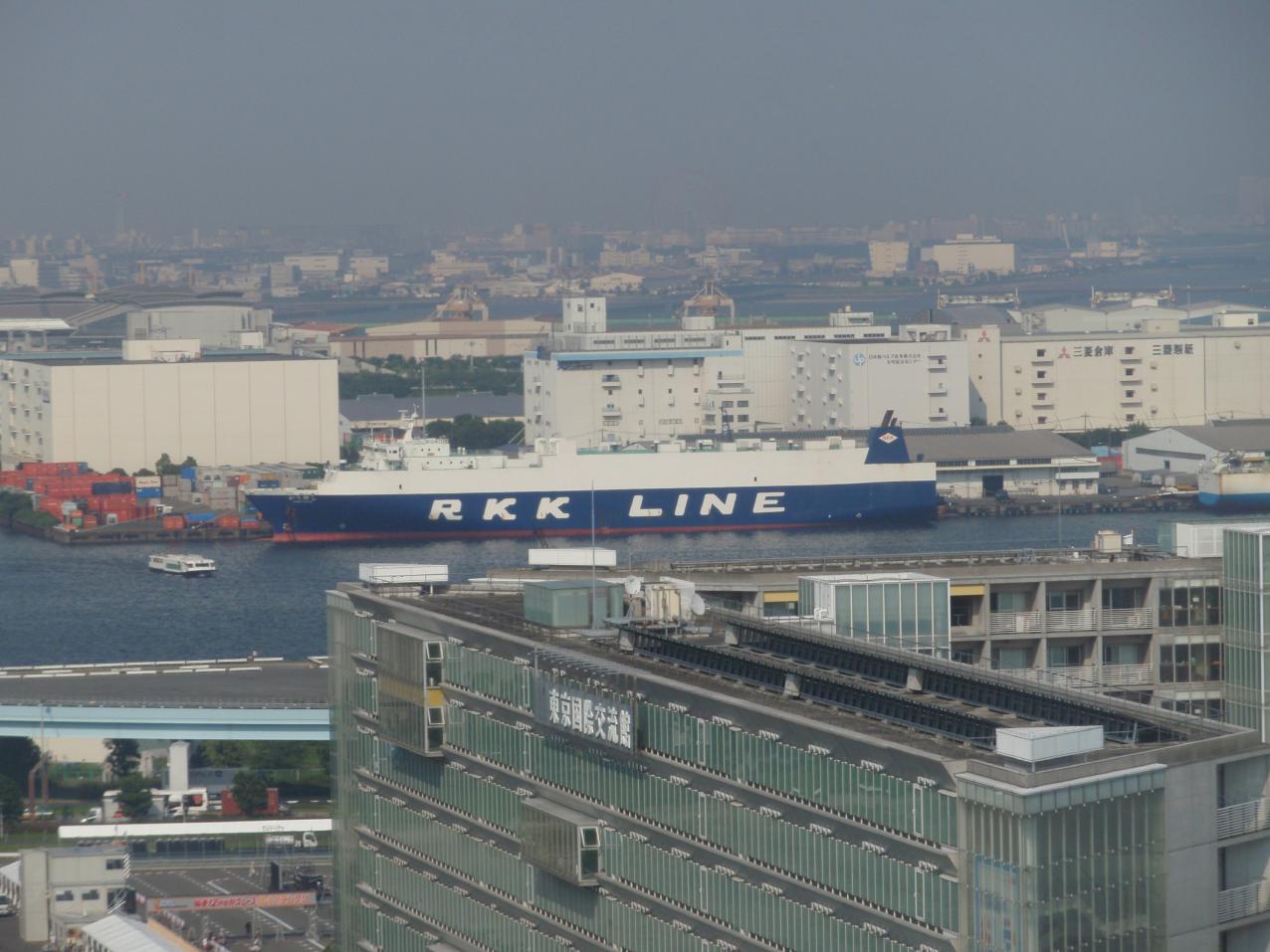 乗船手続き後、これから乗船するマリックスラインのクイーンコーラルプラスを遠くから撮影します。船は出港前の荷役作業中で、近寄るのは大変危険です。結局、出港30分前の17時30分頃、クイーンコーラルプラスに乗りこみました。