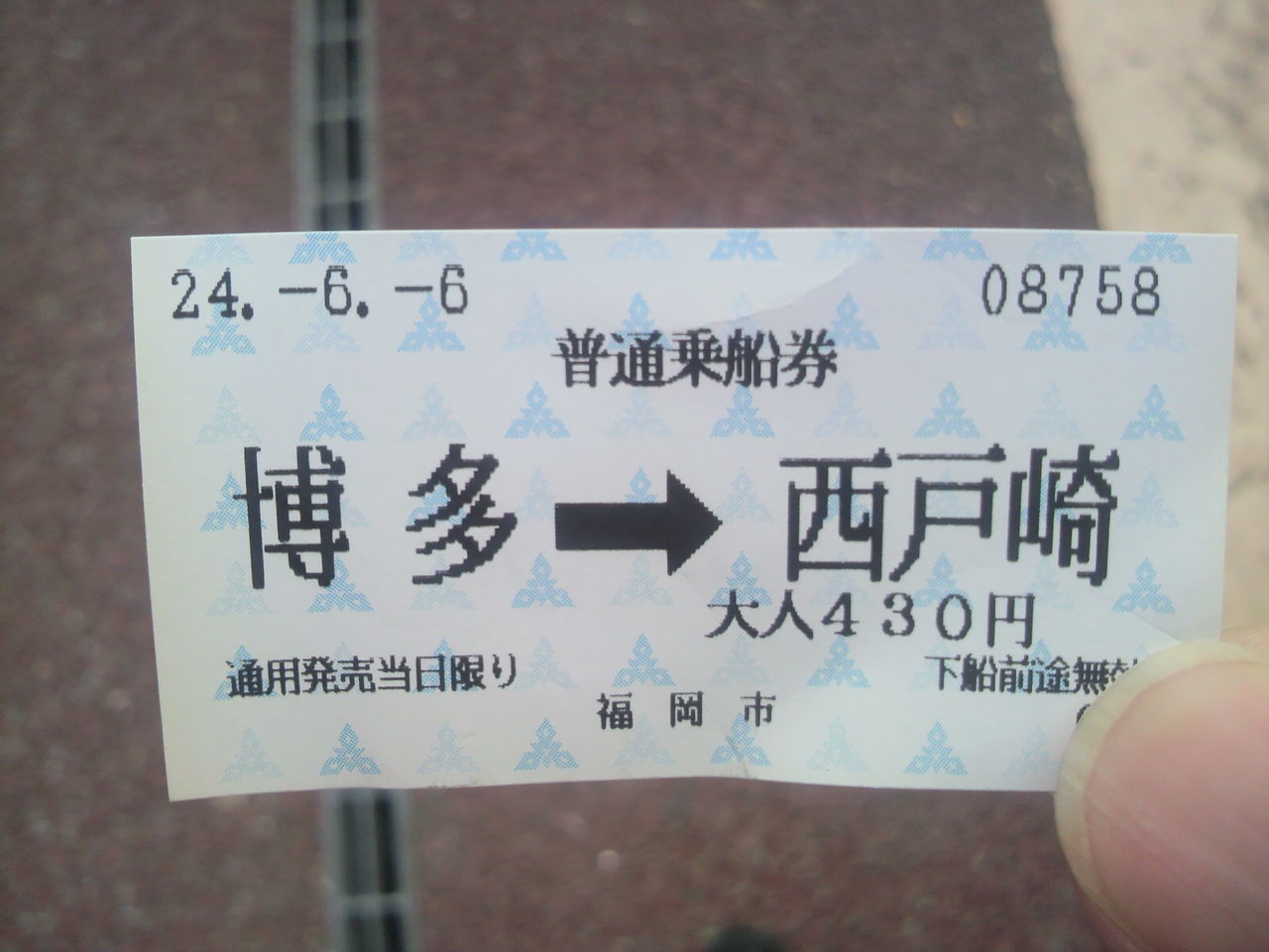 撮影だけでは物足りなくなり、志賀島行の福岡市営渡船に乗船することにしました。博多港から西戸崎まで430円。公営のせいか、民間の高速船よりは安い運賃です。