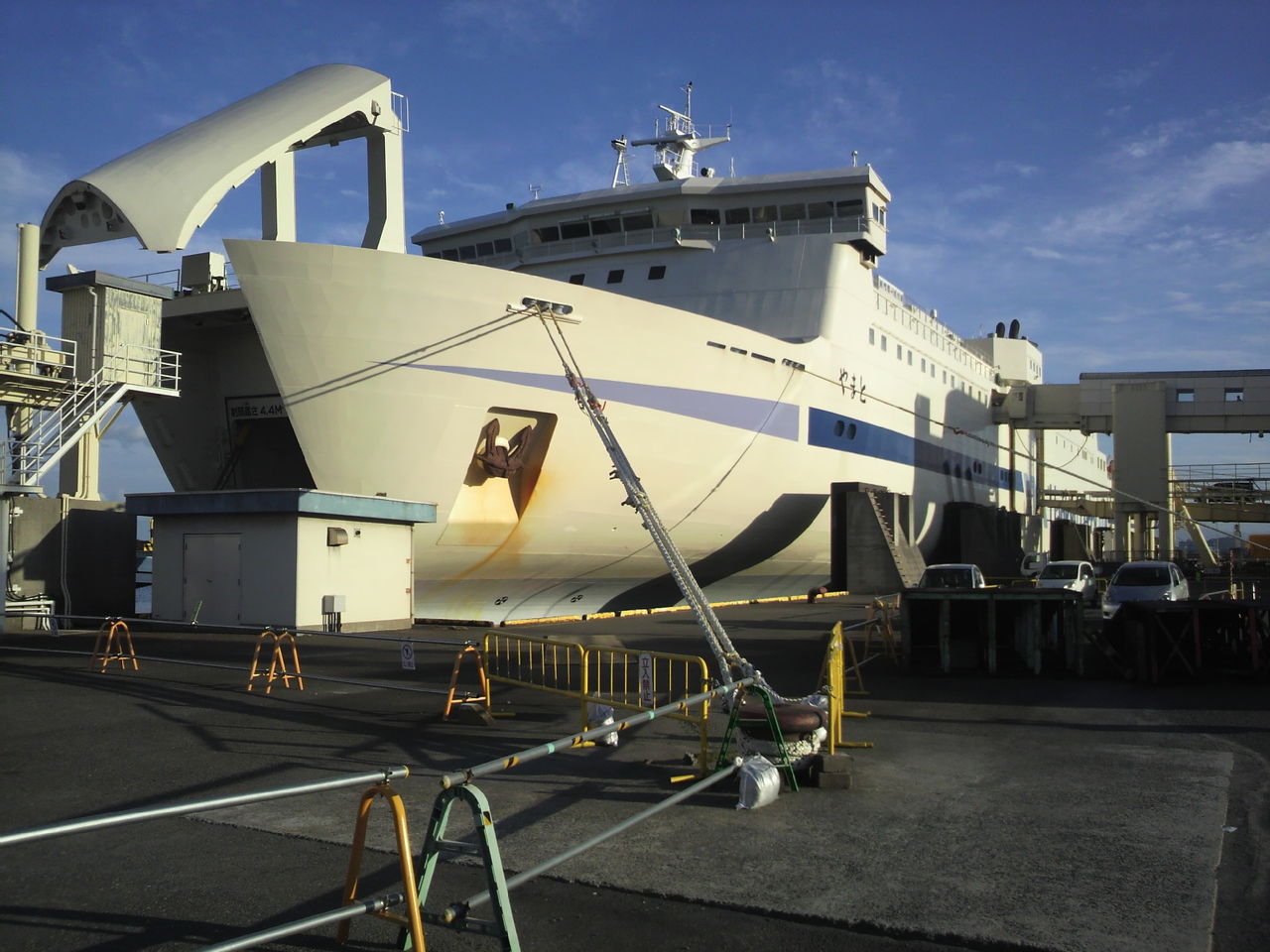 朝は、延長休憩出来る7時までゆっくり寝るはずが船内照明が点いた4時過ぎには起きてしまいました・・・・。身支度をし、船外デッキに出ます。まだ、真っ暗な小倉港入港シーンを見届け、定時に小倉港到着。5時の下船を逃すと、6時半まで下船できない為、結局すぐに下船しました。