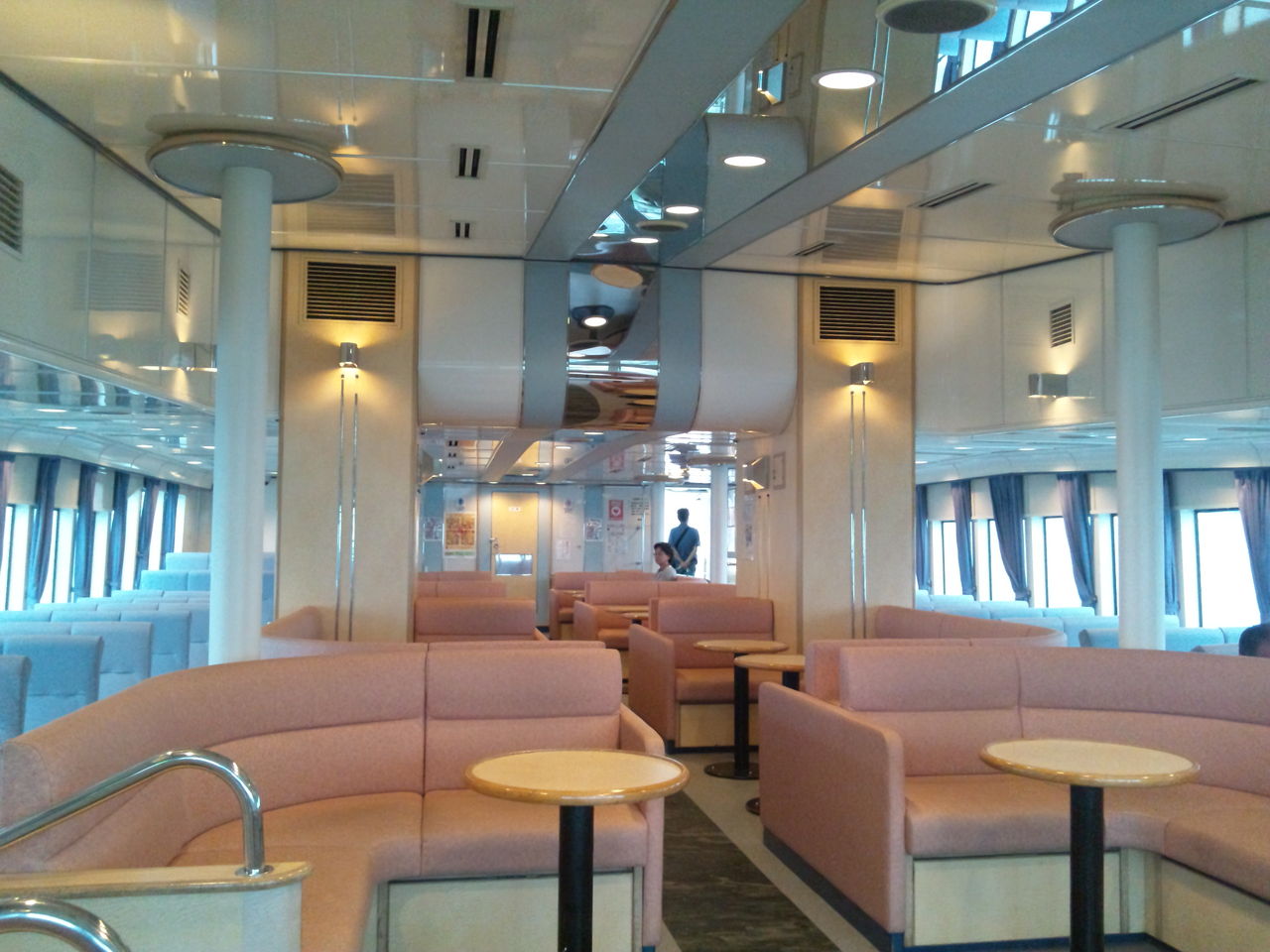 乗船手続き後、今回乗船するフェリーすおうを撮影します。瀬戸内海最大だけあって大きいです。4階までエスカレーターで上がって乗船します。案内所で今回利用する513号の鍵をもらいます。