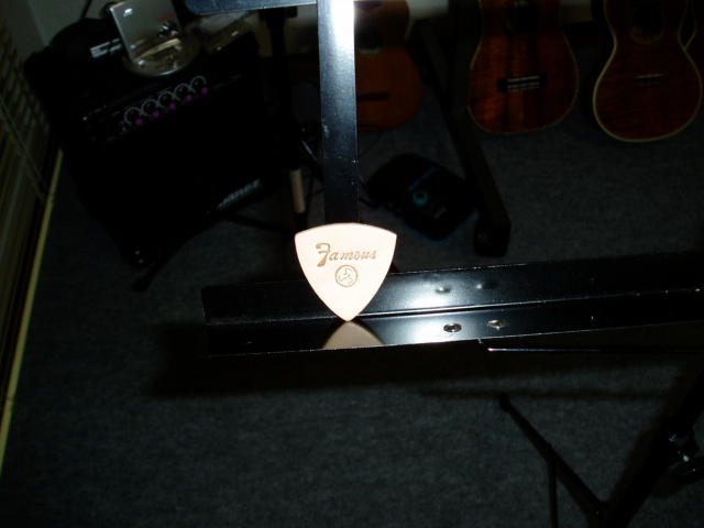 初めて、ウクレレ用の「ピック」を使ってみました。Famousの皮製。