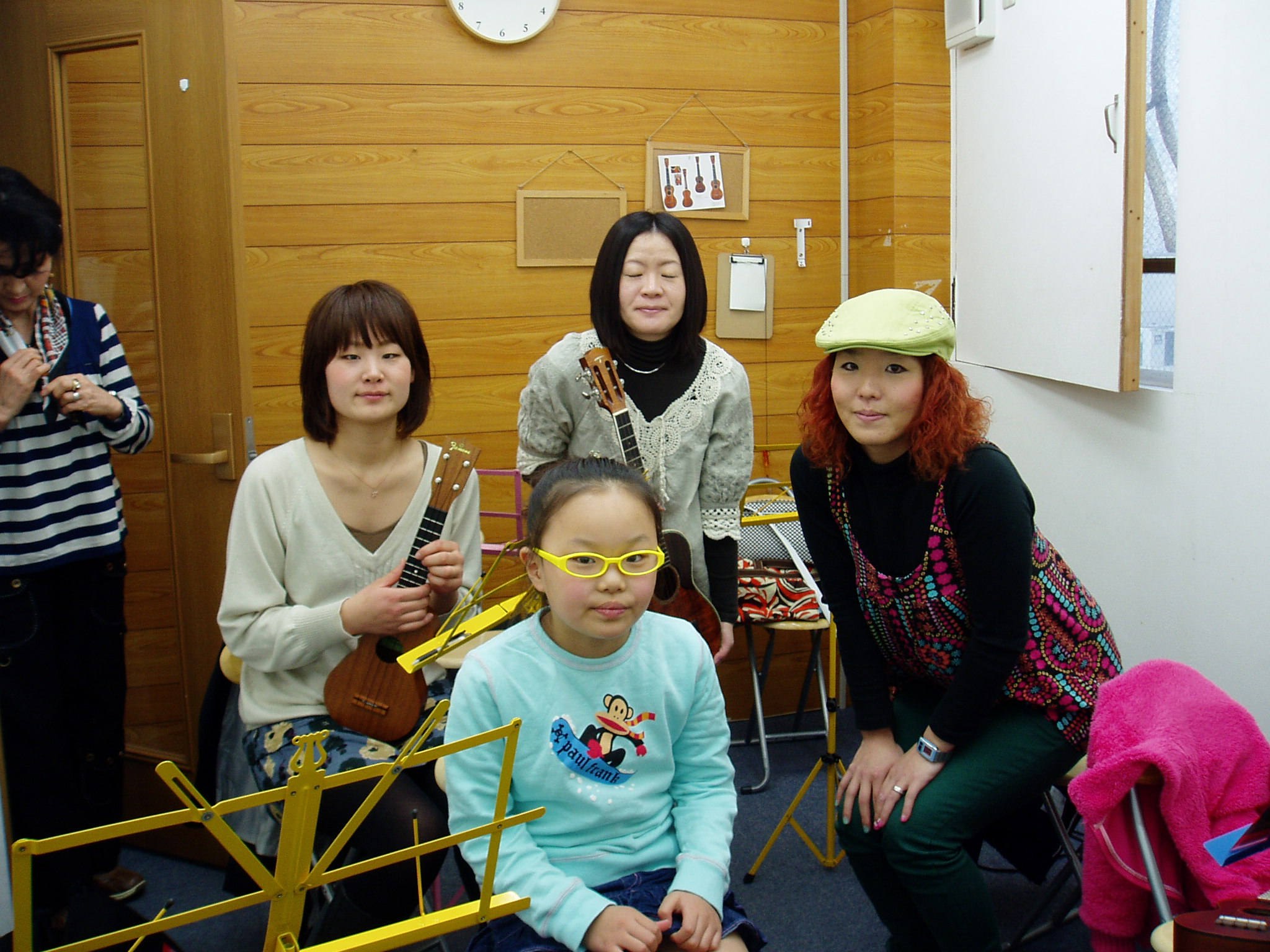 こちらは、三人で一組の、ウクレレグループレッスン。