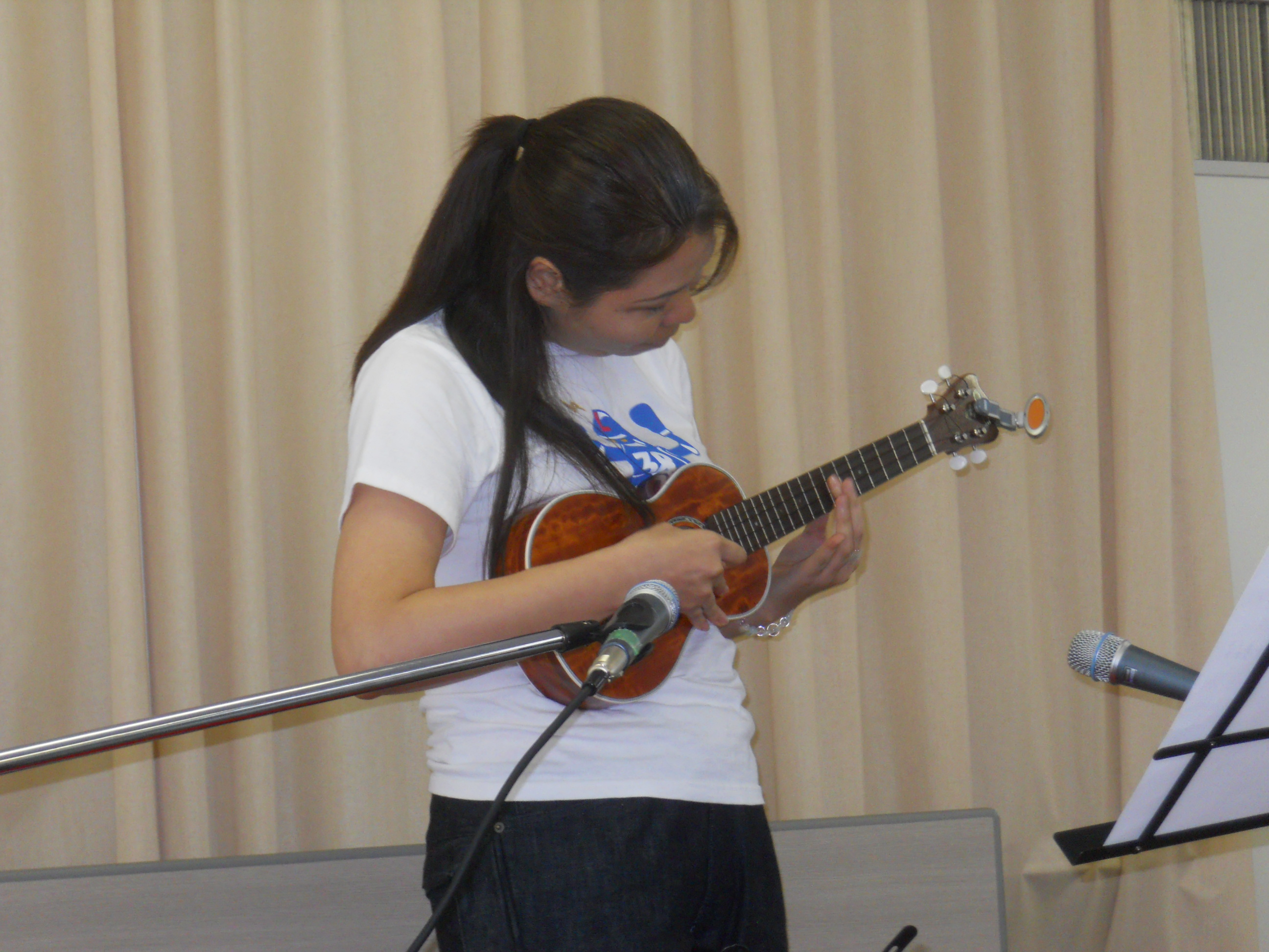 細井先生クロサワ楽器の、NAO出張ウクレレ教室。