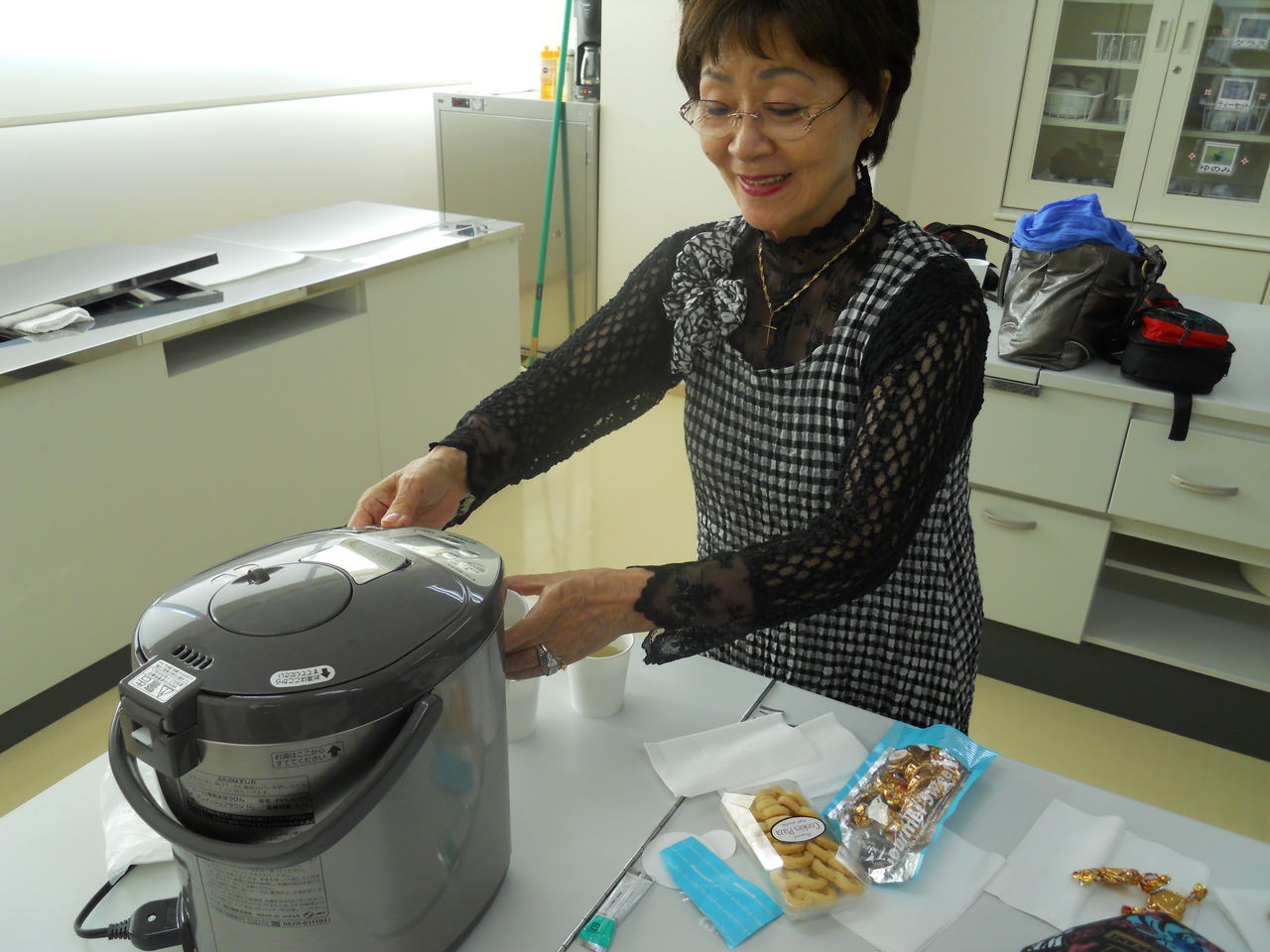東雲にお住まいの方が、お茶やお菓子を持ってきてくれ、