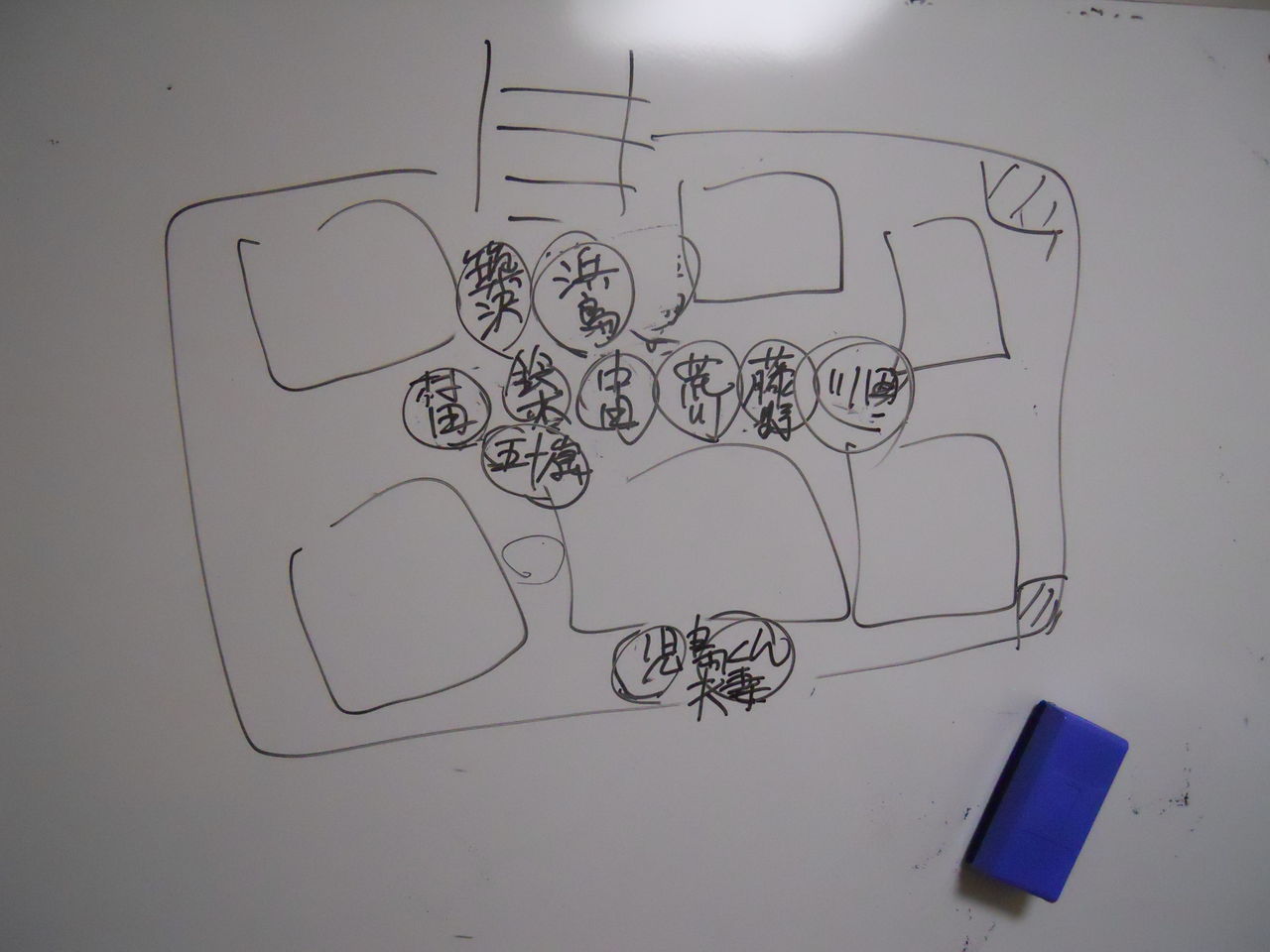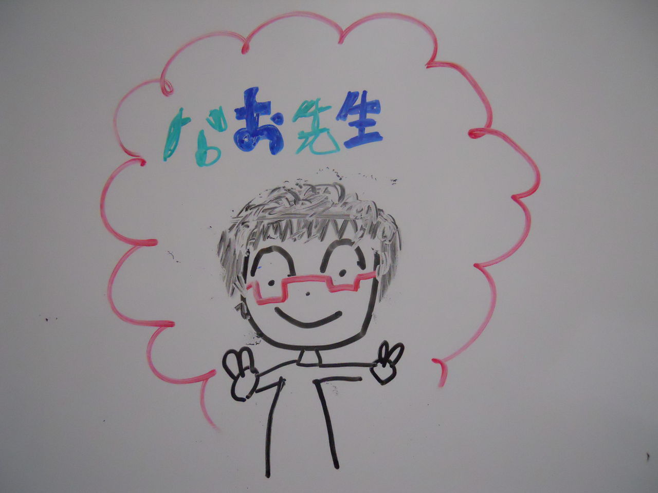 NAOが老眼鏡をかけて、アレンジ譜を書いていると。 二人は、ホワイトボードへ。
