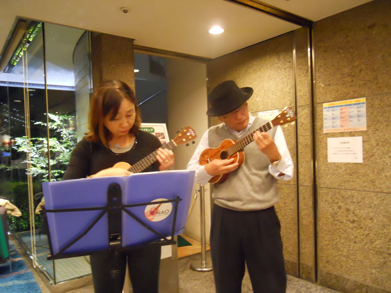 演奏時間は、1時間。 ユークの皆さんは、二人ずつ、交代ごうたい演奏。
