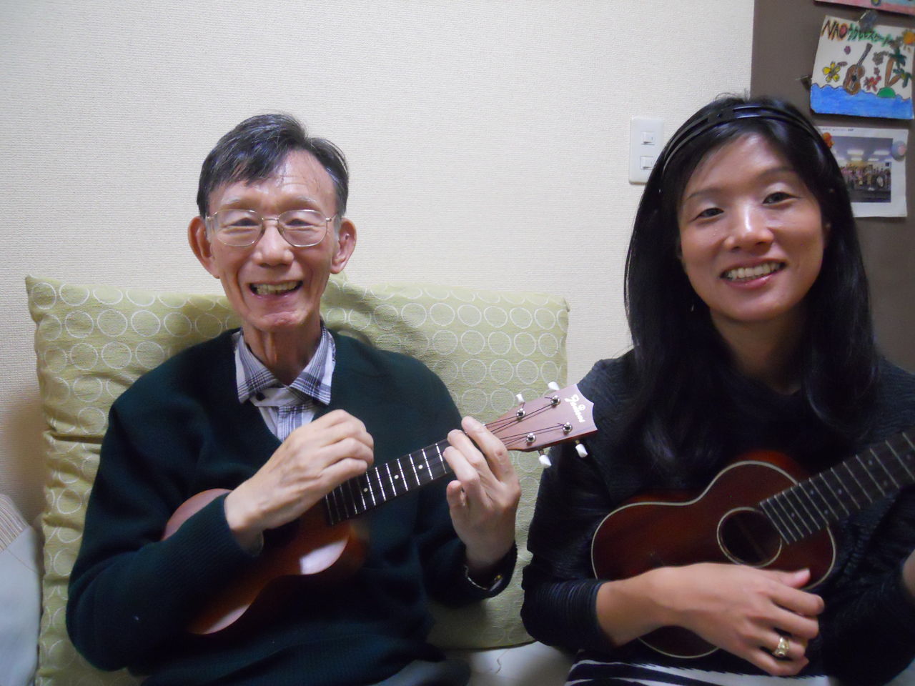 今日は、ママのレッスンが中心。 しーちゃんはウクレレでは先輩。