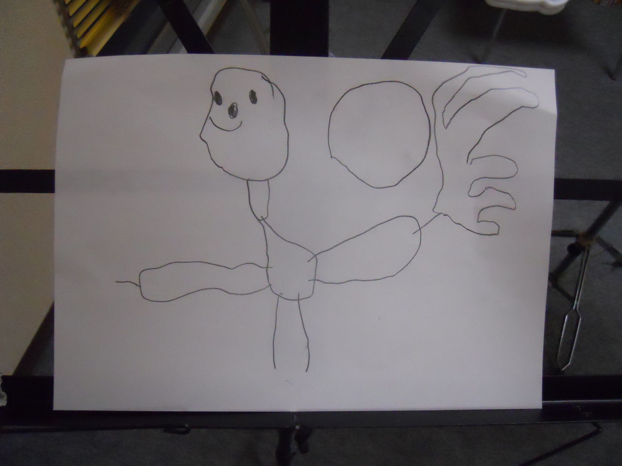 「ぼく、せんせいをかいたの。」